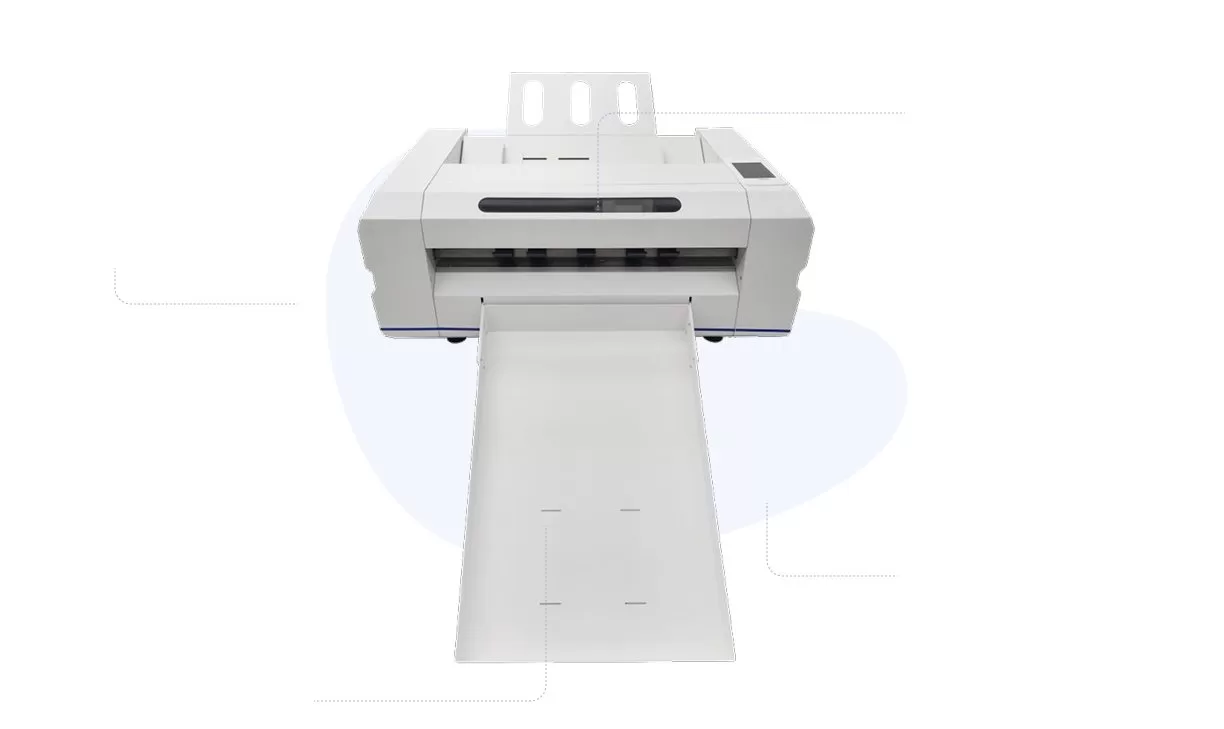 A tecnologia de QR Code permite que o plotter de corte e vinco identifique arquivos automaticamente, eliminando configurações manuais e otimizando a produção.