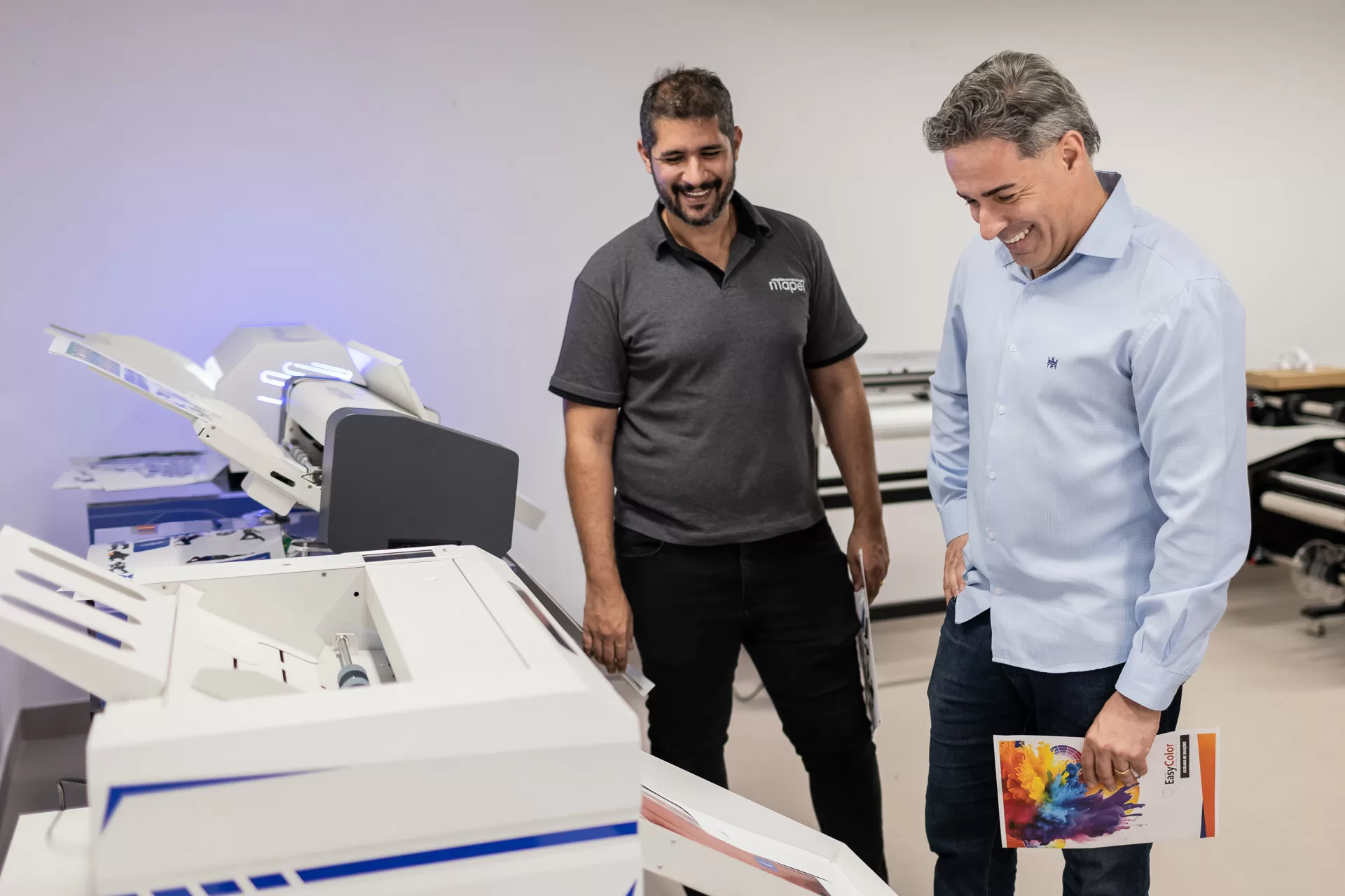 No showroom da Mapel, você pode ver na prática o desempenho das máquinas que transformarão sua produção gráfica. Teste impressoras UV, DTF e outros equipamentos em tempo real e descubra como otimizar seus processos.